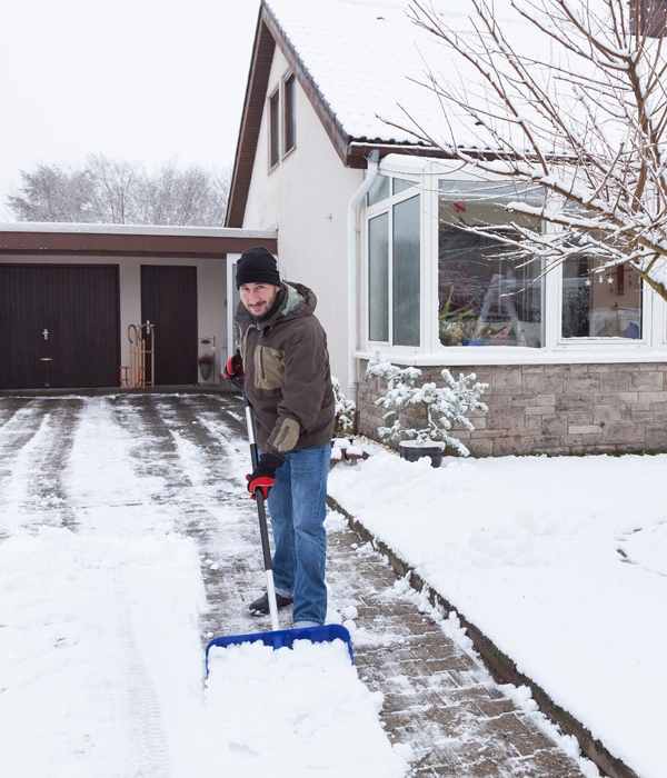 Dégager la neige, traiter les allées et patios, et entretenir le jardin pour prévenir les dommages et maintenir la sécurité.